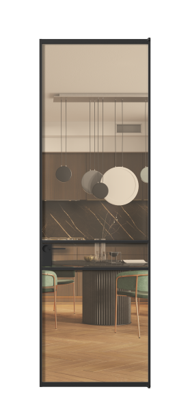 Минималистичный профиль повторяет форму профиля алюминиевых раздвижных перегородок Формато, что позволяет легко сочетать оба решения в одном пространстве.